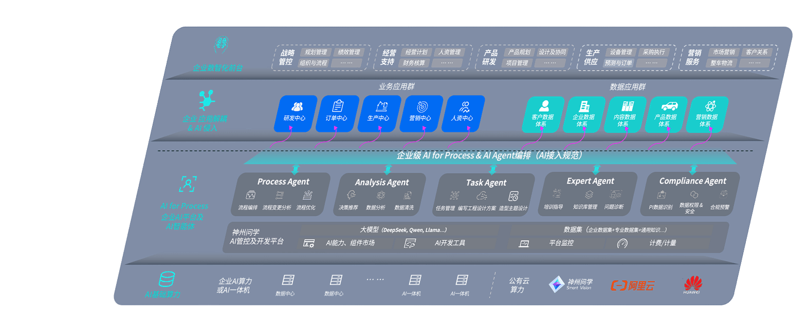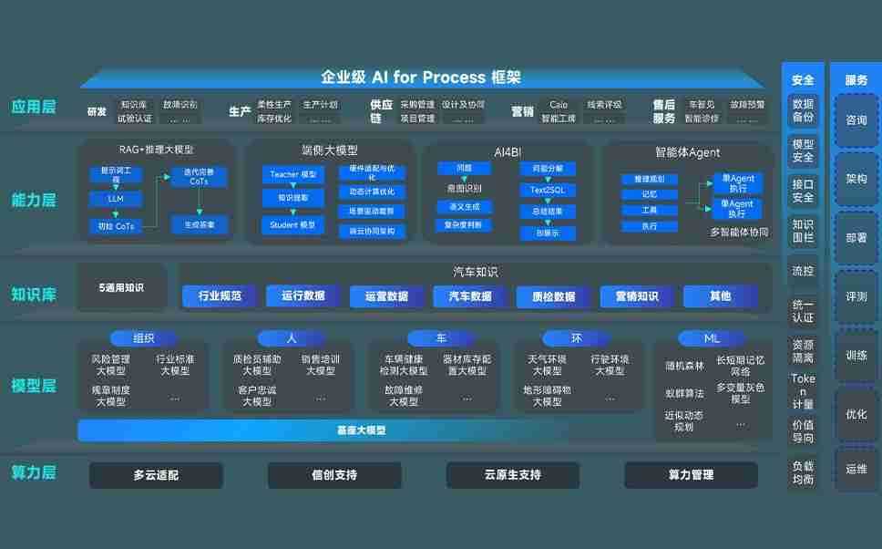 端到端的一站式AI工作空间深度融合了从企业战略规划到日常经营的全流程业务板块,,定向解决车企内部领域多、、、、部门多、、、、链条长、、、、场景碎片化等难题,,支持车企快速构建以AI为核心的生产力写作体系,,,实现任务执行与AI能力的无缝集成与交互